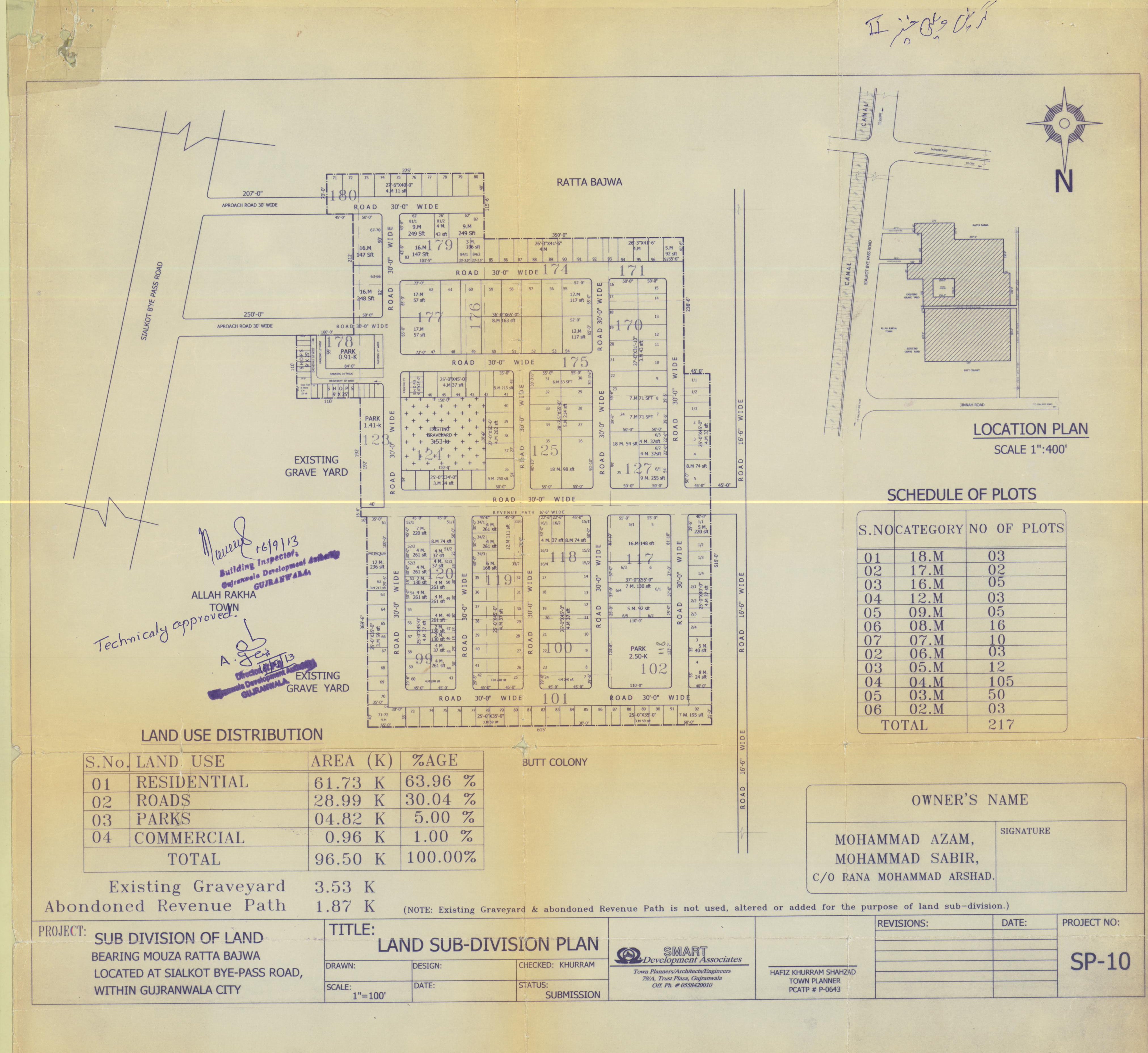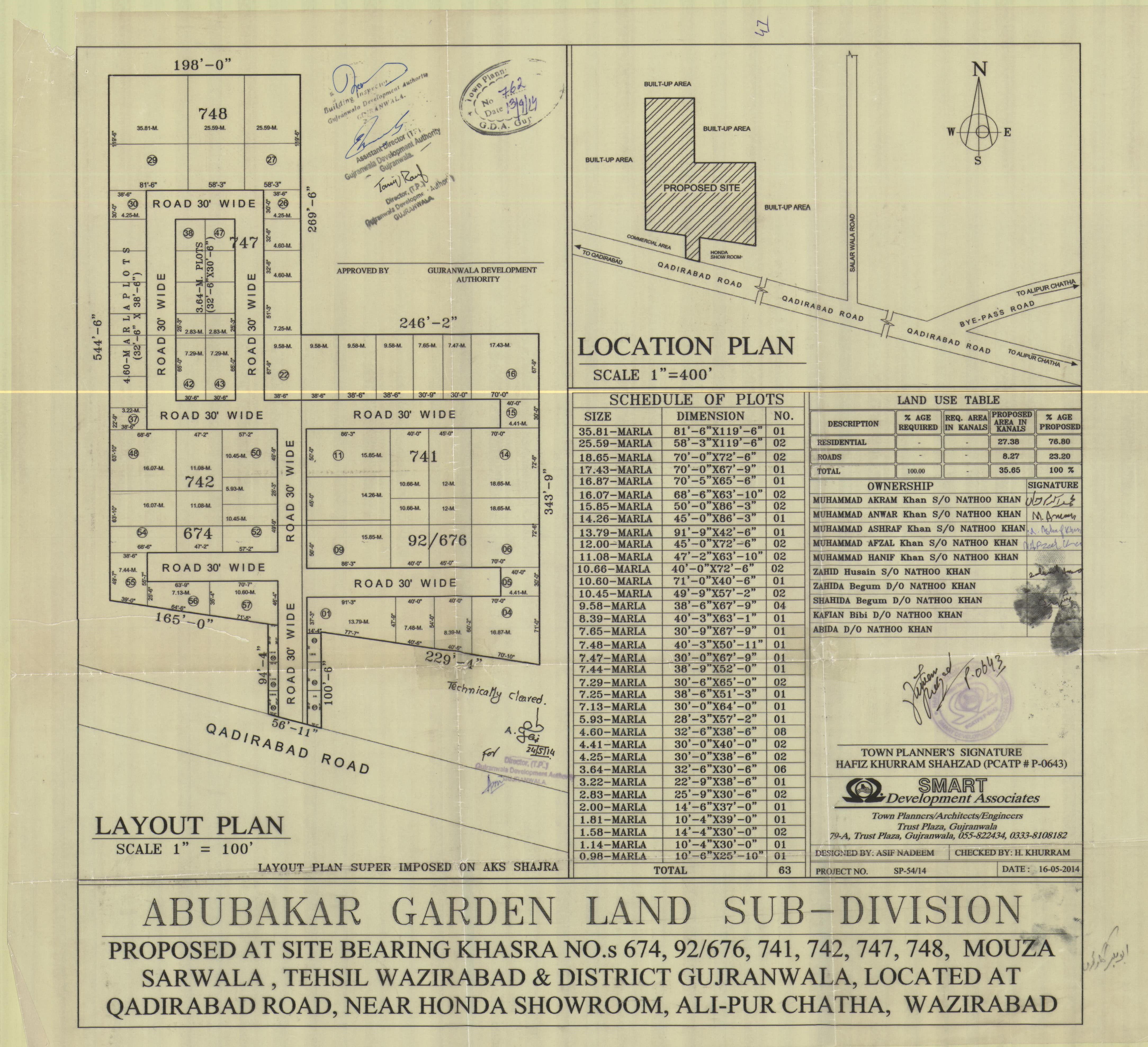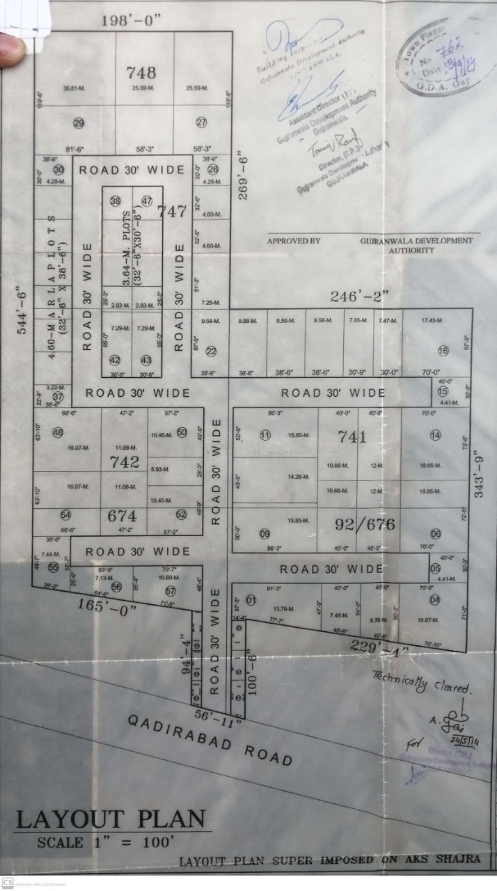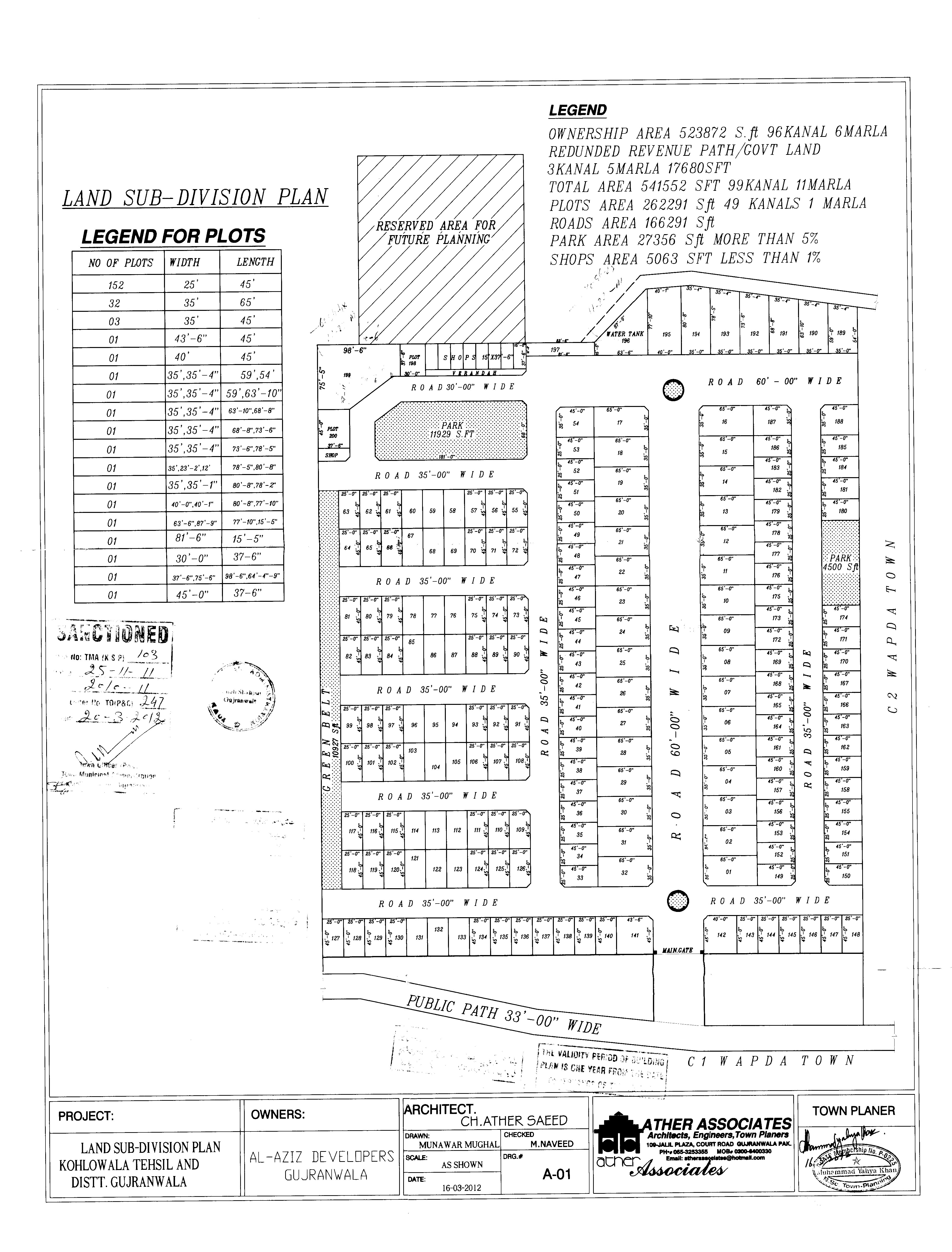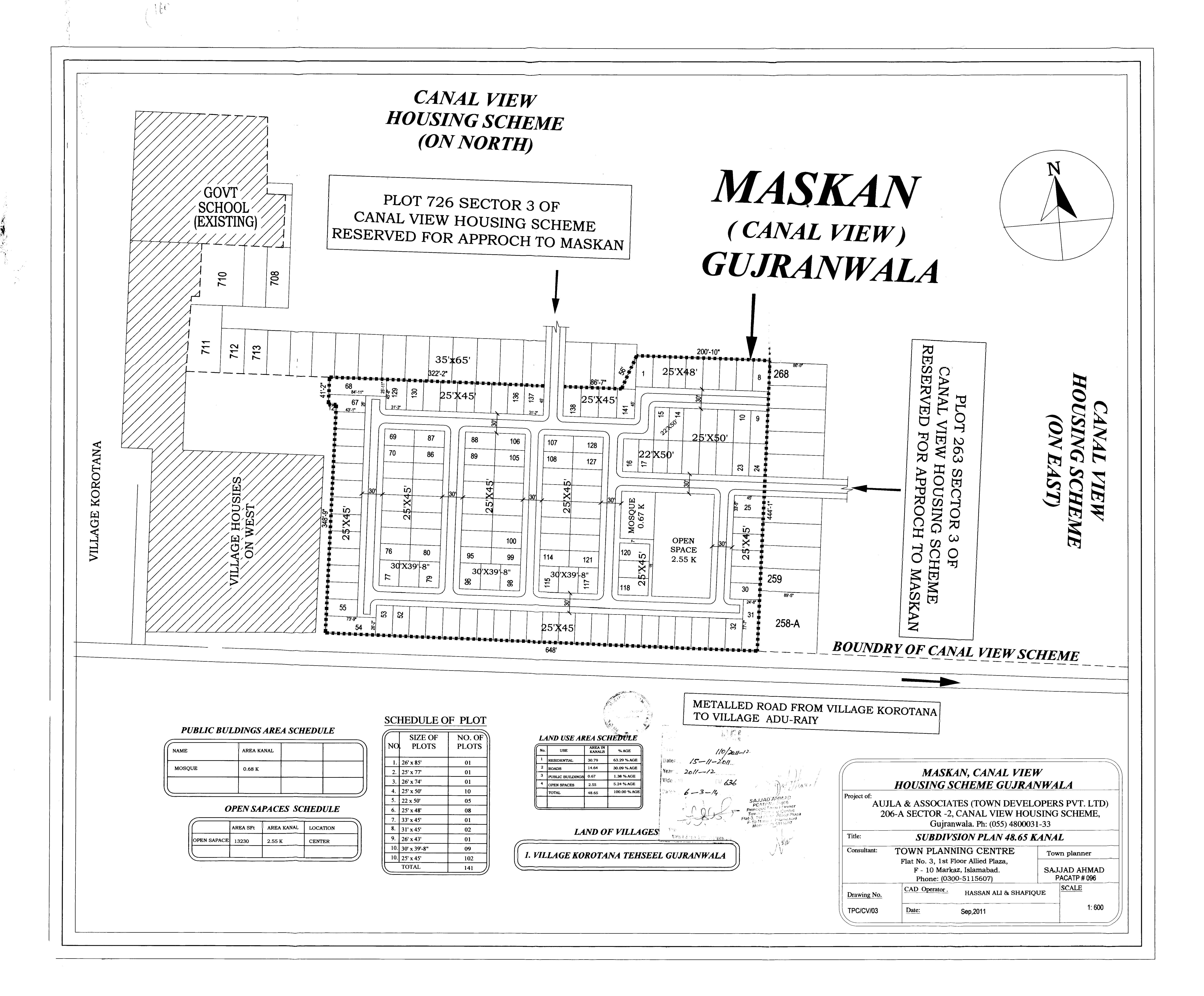| 229 | Land Sub Division Mohallah Akhtarabad Rahwali Cantt Gujranwala | Mouza Shah Kot , Tehsil & District Gujranwala | 32-k | |