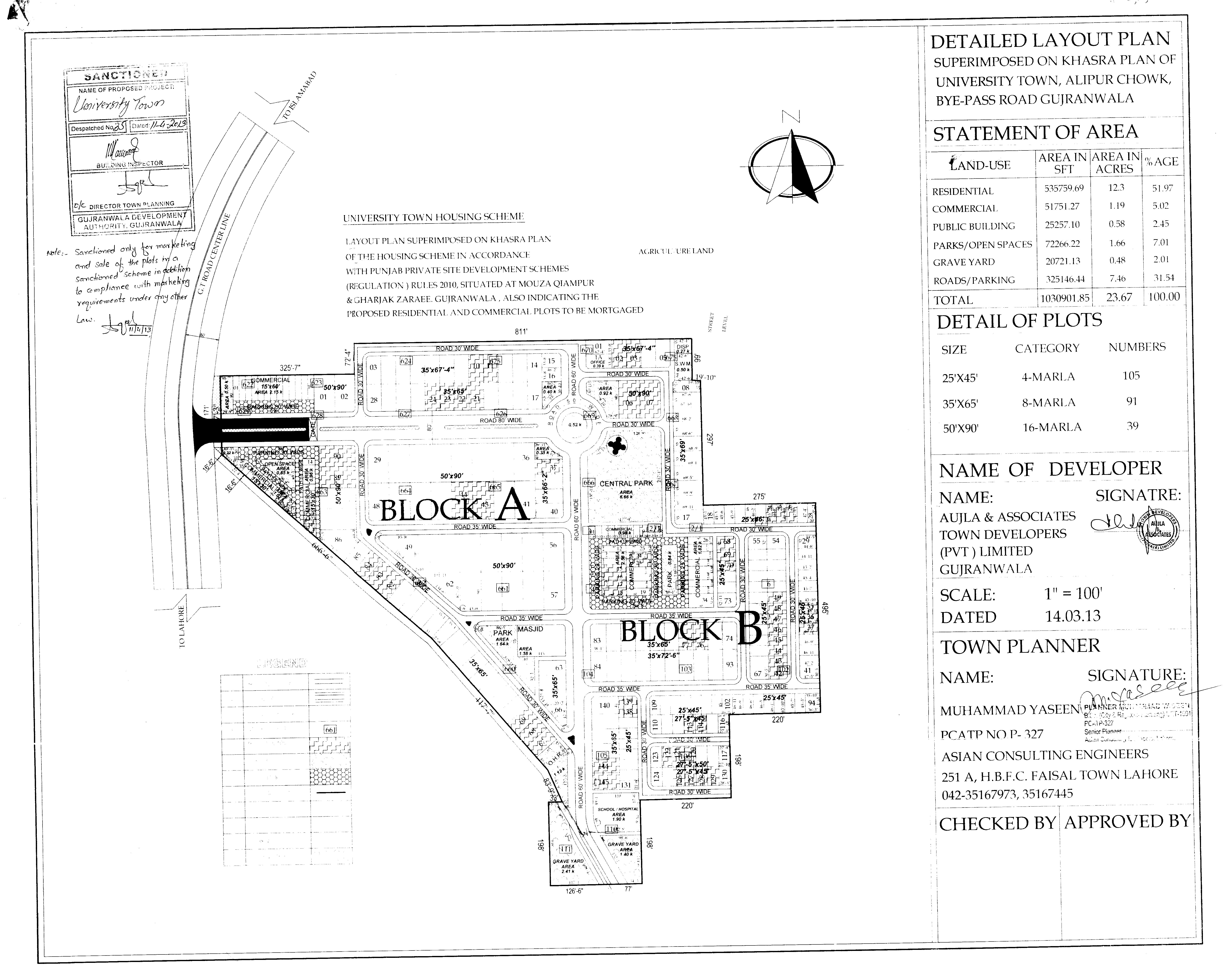 | 14 | University Town | Mouza Qayyampur & Garjakh near Alipur Chowk By- Pass Road, Gujranwala | 189.36 | Map |
