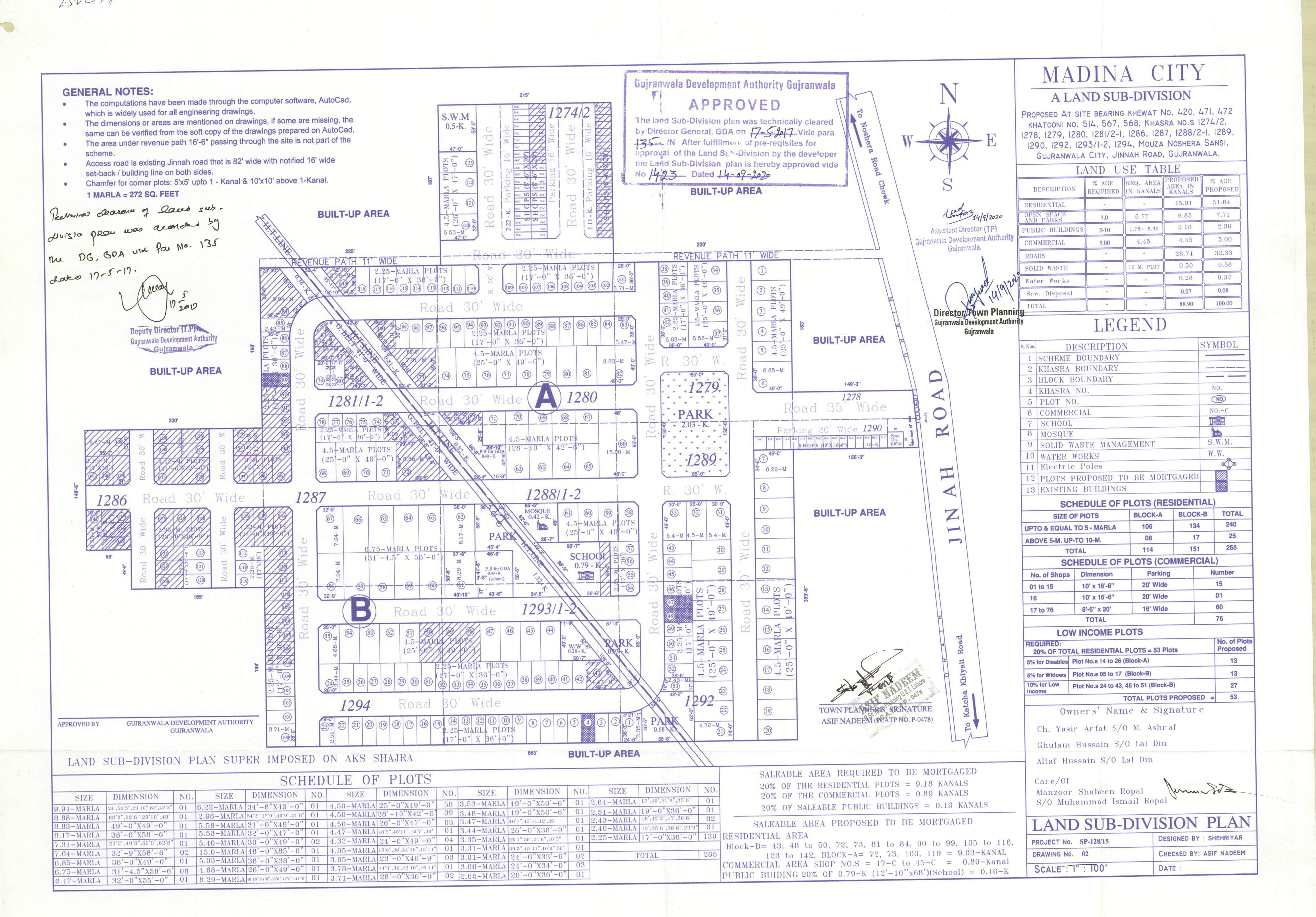 | 5 | Land Sub Division M.Shahbaz Etc | Located At New Abadi Cheema, Aroop Near Darbar Sharif, Gujranwala, | 32-K | |