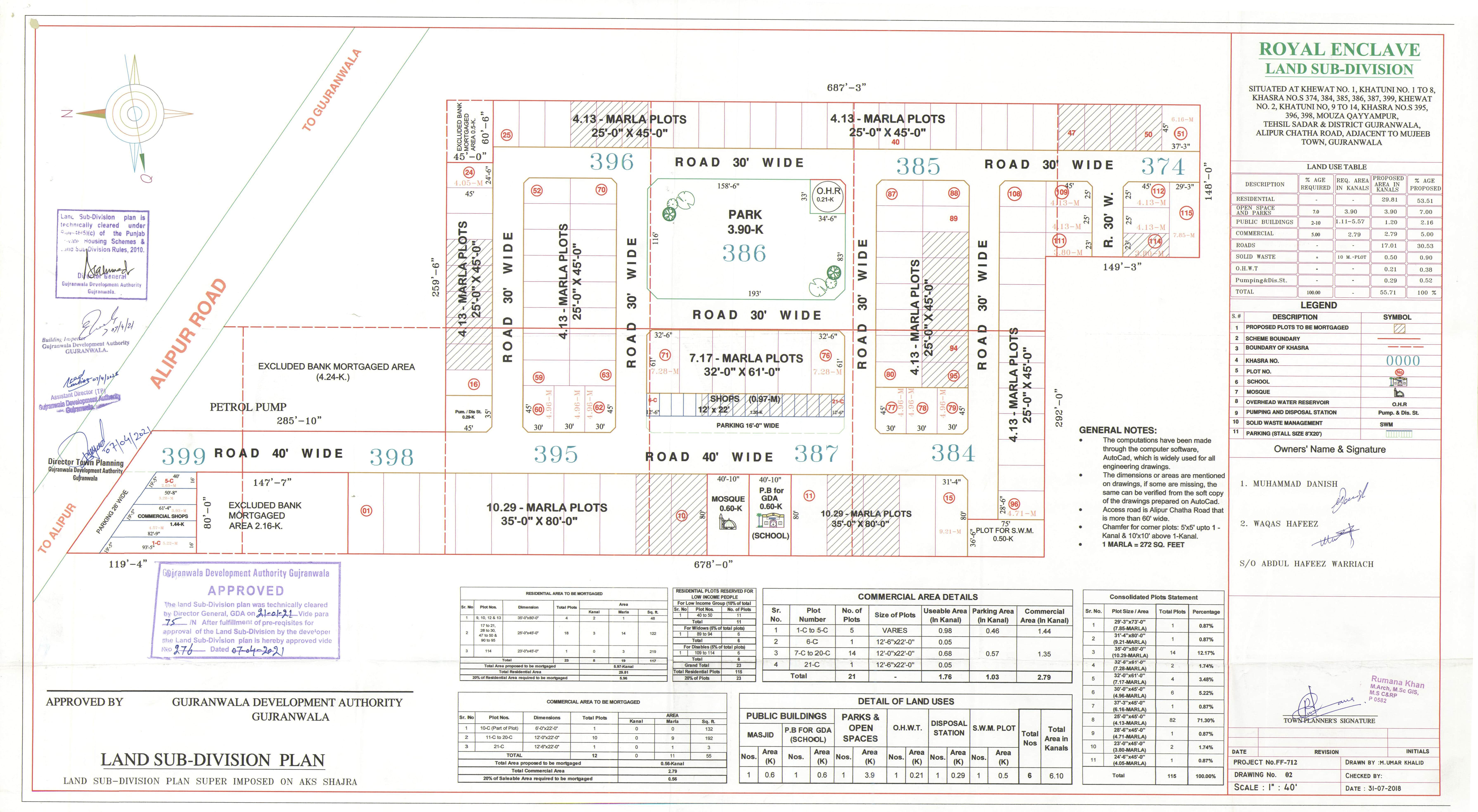 | 225 | Land Sub Division Ali Pur Road Link Bazaar Ashraf Town | Mouza Qila Didar Singh Tehsil & District Gujranwala | 32-k | |