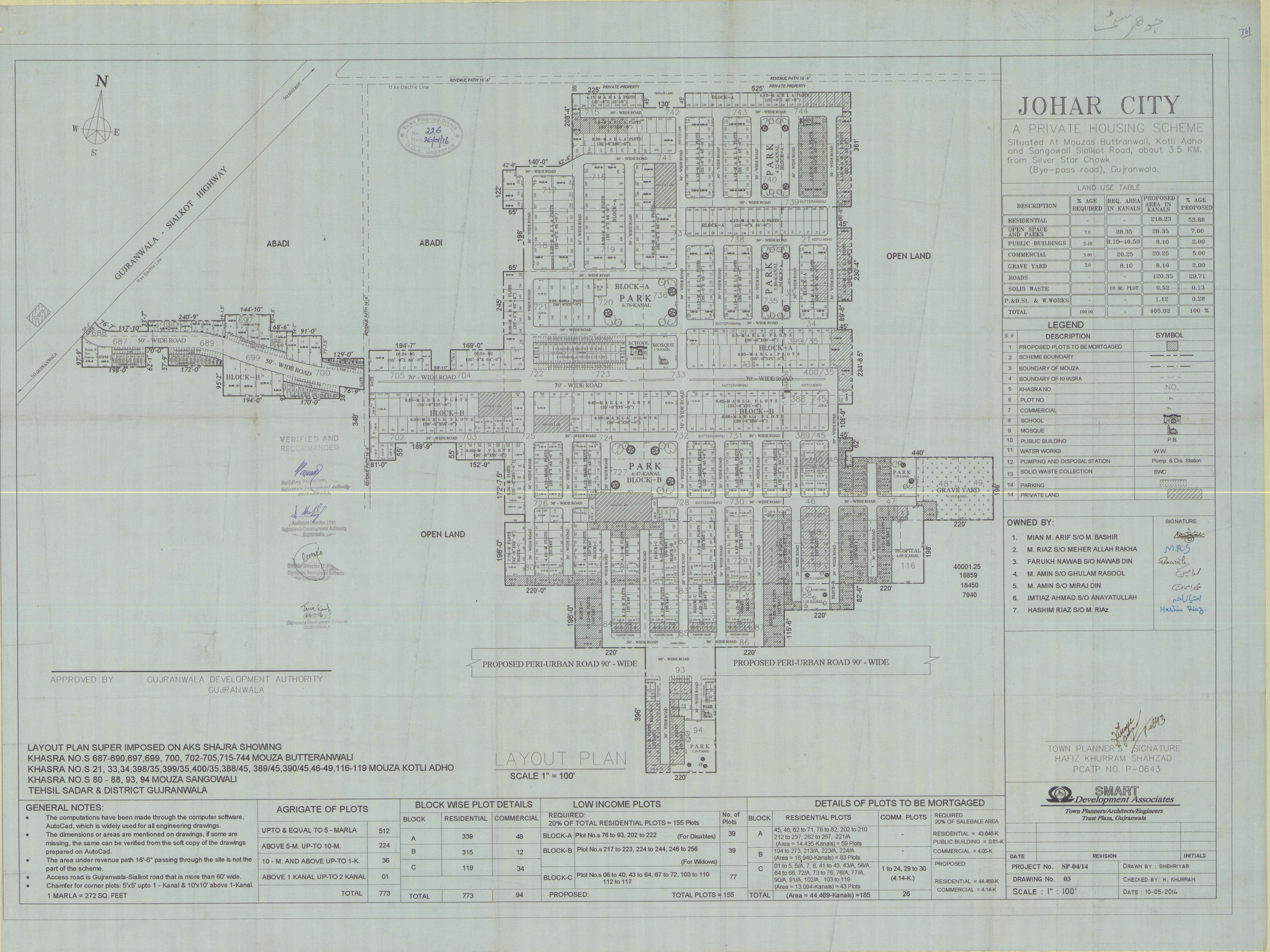 | 21 | Johar City | Mouza Butteranwali, Sangowali & Kotli Adho, Sialkot Road, Gujranwala | 405.02 | Map1 |