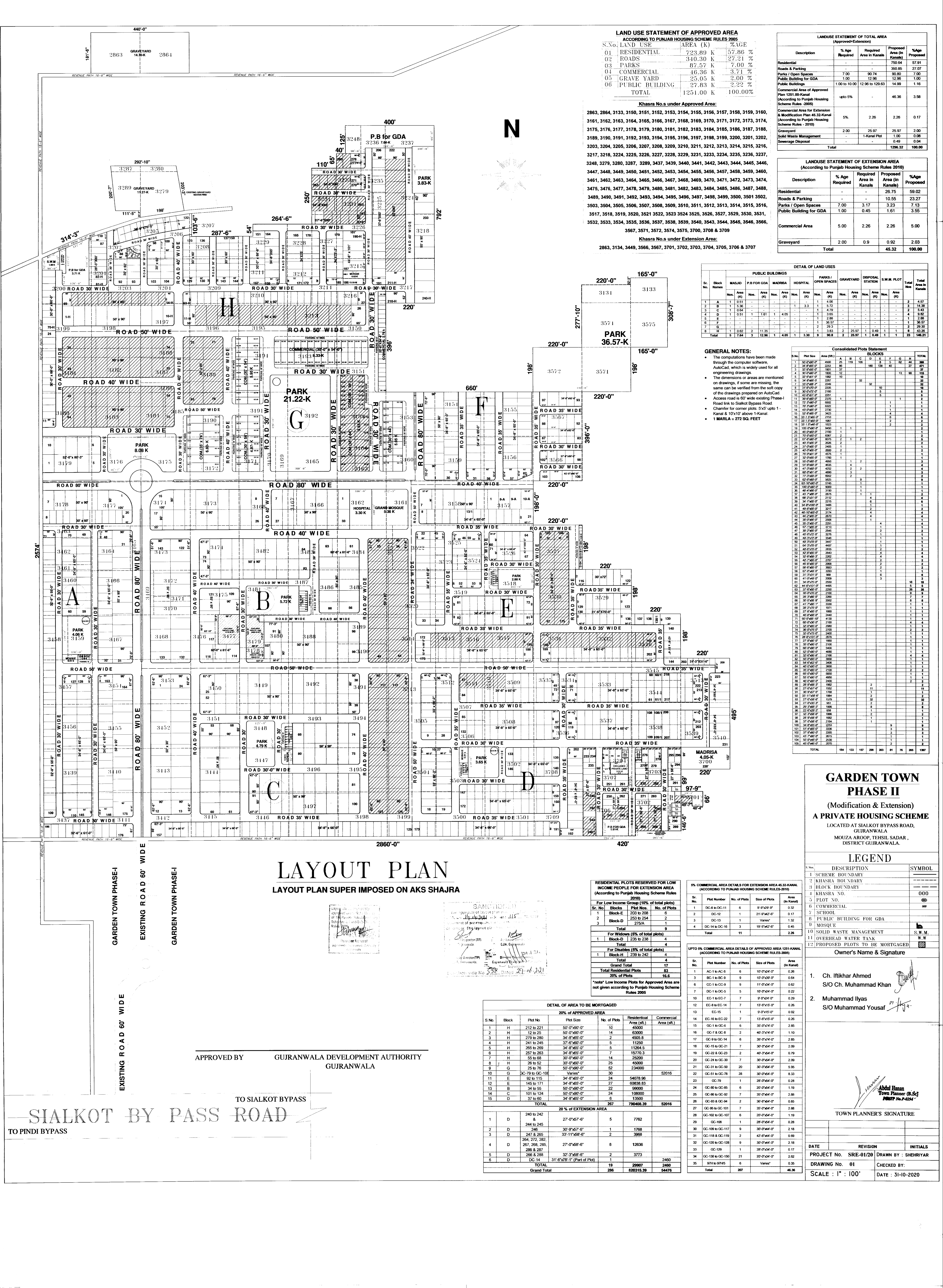 | 19 | Garden Town Phase-II (Modification & Extension) | Mouza Aroop, Tehsil Saddar, District Gujranwala | 1296.32 | Map |