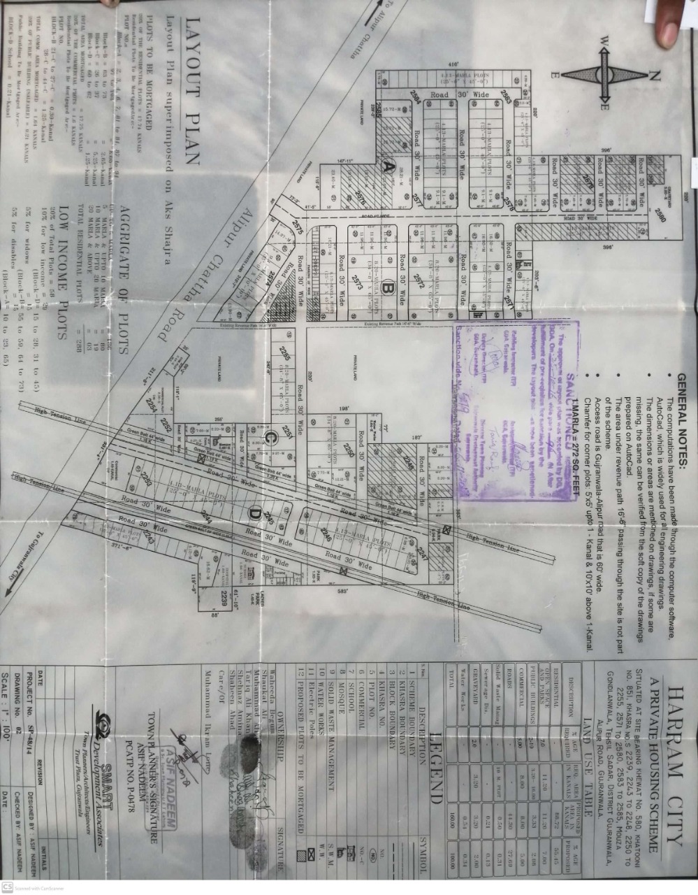 | 242 | Land Sub Division Harchoki Road Noshehra Virkan | Mouza Harchoki Tehsil Noshehra Virkan District Gujranwala | 24-k | |