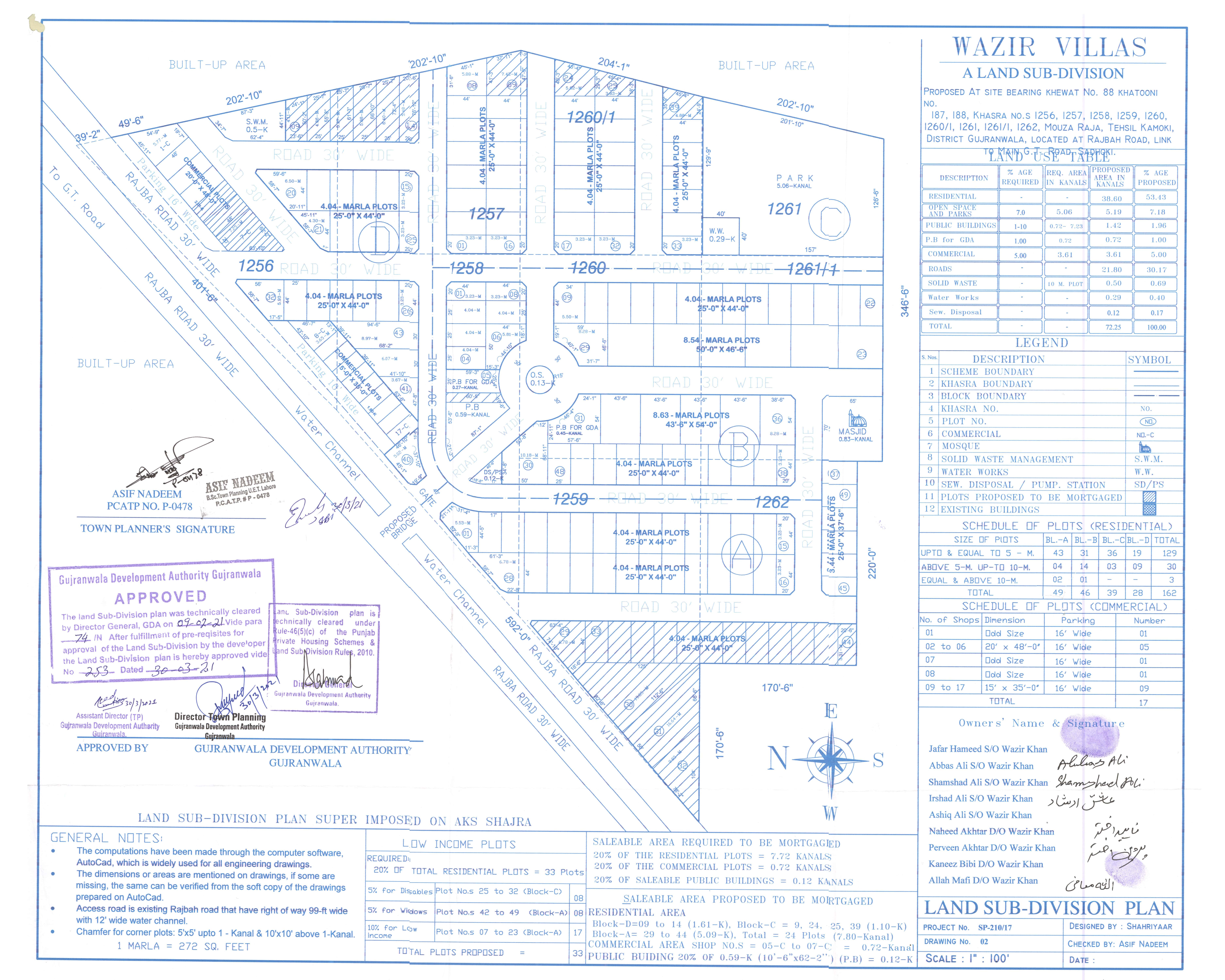 | 6 | Land Sub Division ( Mohallah Tayyab Park) M.Arshad Kamboh Etc | Located At Ferozwala Road Near Police Station Ferozwala | 44-K | |